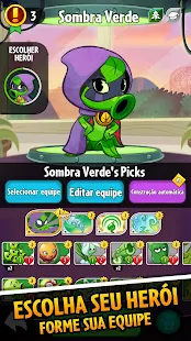 Todo Herói precisa ter uma turma. Monte a sua e diversifique suas habilidades colecionando companheiros – desde os personagens de PvZ que você já conhece e adora até novos e ousados membros das plantas e dos zumbis. Há centenas deles para você descobrir! Trace estratégias distintas para o seu Herói selecionando companheiros de equipe compatíveis e testando combos devastadores. Ou ainda, use o Construtor de Equipes Automático para montar sua equipe rapidinho, experimentar novas estratégias e melhorar suas equipes conforme você coleciona novos personagens.